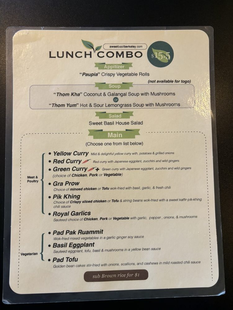 Welcome to Sweet Basil Thai, a delightful culinary escape nestled at 1736 Solano Ave, Berkeley. This Thai eatery offers an extensive menu that caters to a wide array of dietary preferences, including numerous vegetarian and vegan options. Whether you're in the mood for a casual dinner or a formal gathering, the ambiance strikes a perfect balance between classy and casual.